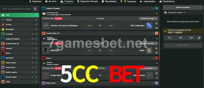 O 5CC Bet oferece uma grande seleção de opções de apostas em e-sports com probabilidades competitivas